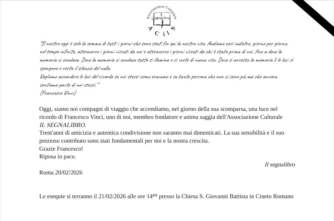 L''Associazione Culturale "il Segnalibro" di Cineto Romano, è stata fondata nel 1996, senza alcuna finalità politica, da un piccolo gruppo di amanti di Cineto e della Valle dell'Aniene con l'intento di promuovere, attraverso la cultura, la conoscenza del territorio ed il suo sviluppo economico.
